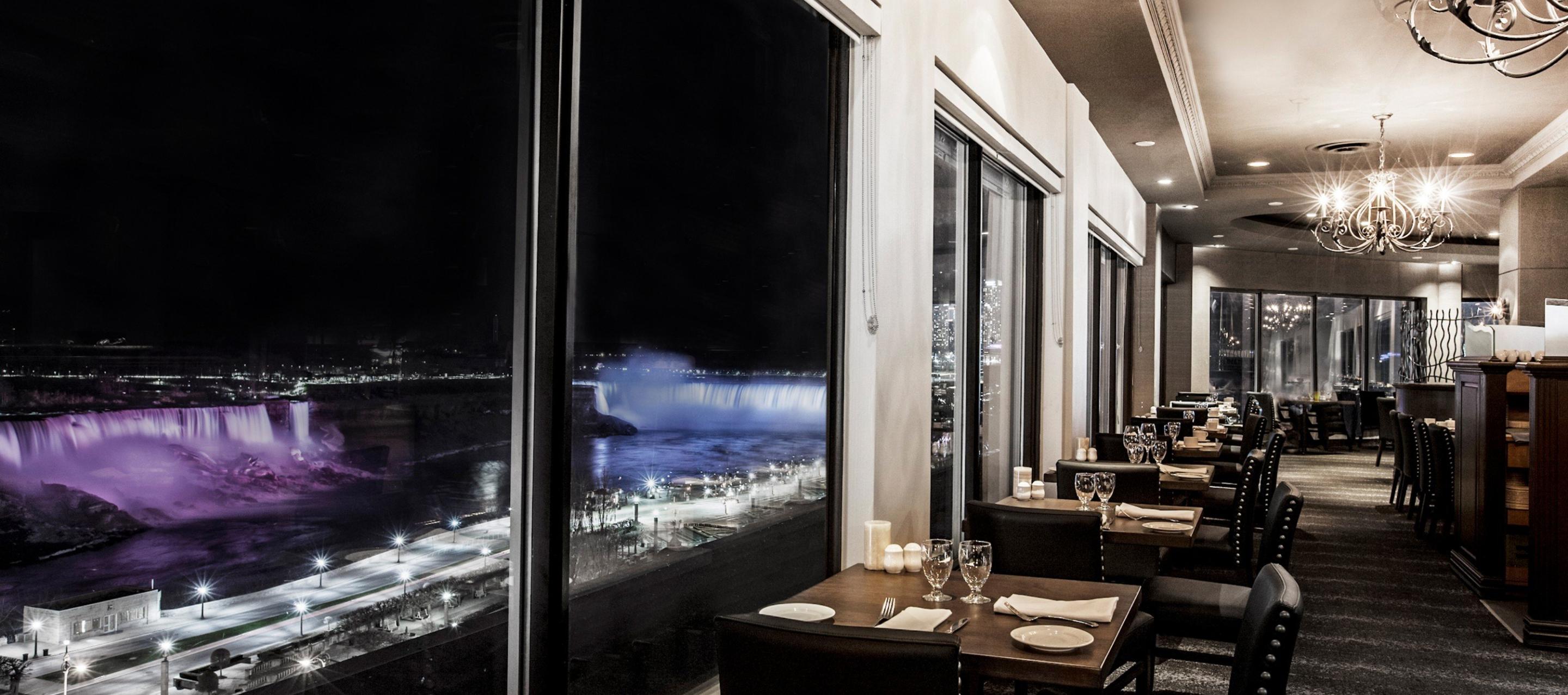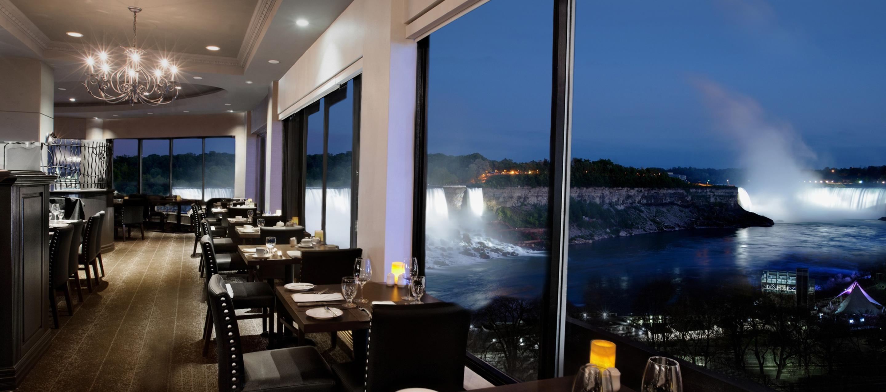 Whether you're catching up with friends, conducting business, or enjoying a quiet dinner for two, each dining experience will be enhanced by exceptional views of Niagara Falls from floor-to-ceiling windows.