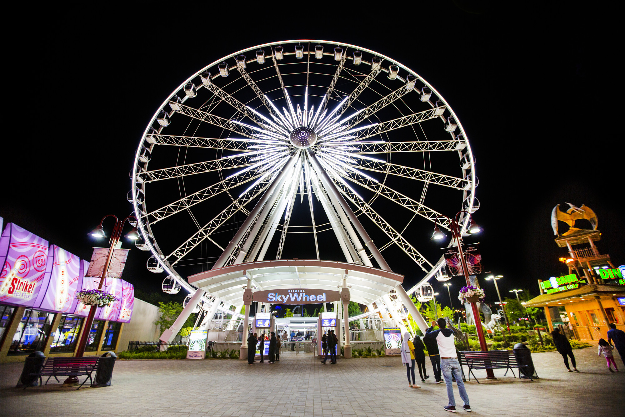 Are you ready for a must-see Niagara Falls attraction with breathtaking views of the Falls and beyond? Visit Clifton Hill in Niagara Falls and take a ride on Canada's largest observation wheel, the Niagara SkyWheel. Towering 175 feet (53 metres) above the Niagara Falls skyline, the SkyWheel offers an unforgettable way to see Niagara Falls from above. From this vantage point, enjoy stunning views of the Horseshoe and American Falls, the Niagara River, and nearby landmarks.