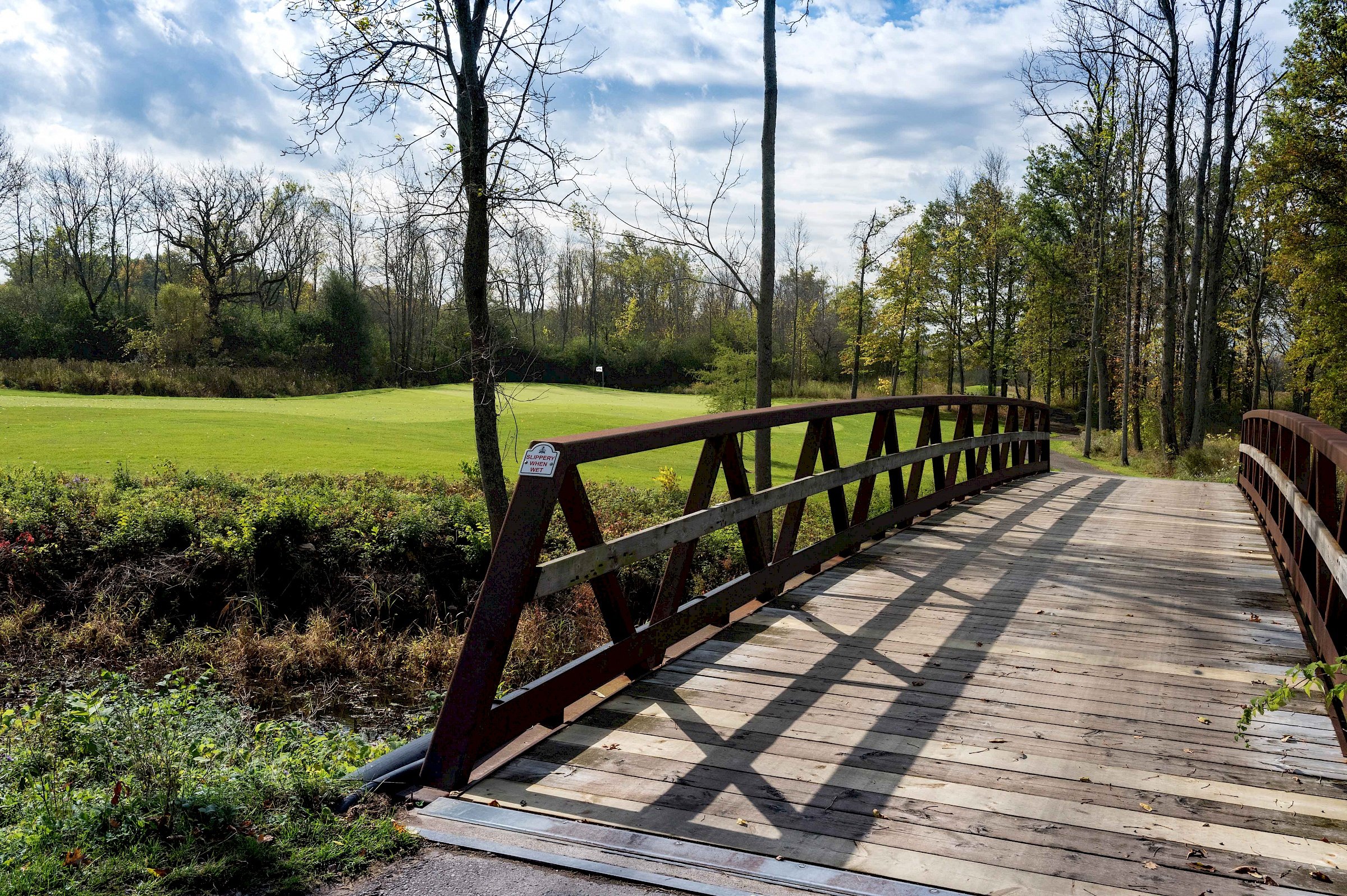 On the south side, is one of Thomas McBroom's finest masterpieces. You'll encounter thick stands of deciduous trees, wetland hazards, knee-high fescue rough, and impeccable conditioning from tee to green.